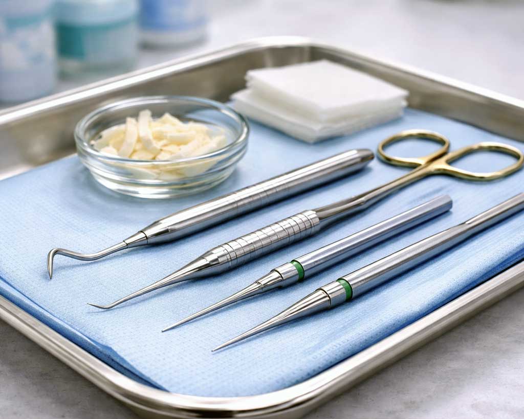 - The gumline is guided over the exposed roots and stabilized using collagen strips, which support healing and maintain tissue position.