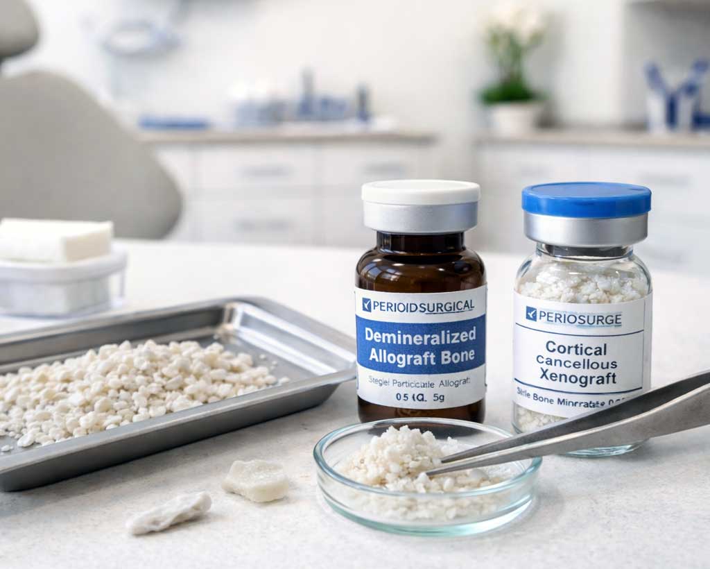 We use several types of grafting material — including autografts, allografts, xenografts, and alloplasts — selected based on your specific needs, healing goals, and implant timeline.